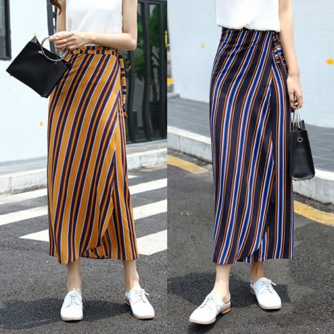 Outfit dengan motif garis vertikal adalah kunci agar tubuh mungilmu terlihat lebih tinggi. Selain atasan yang bermotif garis panjang, kamu juga bisa menggunakan celana dengan motif garis-garis vertikal. Padukan celana stripe panjang dengan atasan polos atau bermotif kecil-kecil.